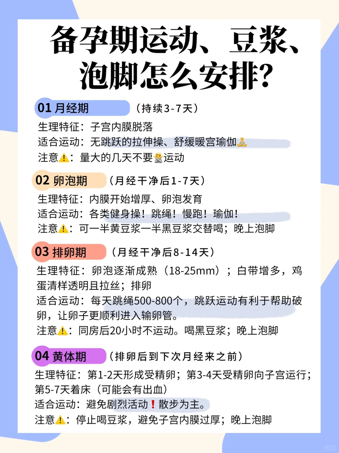 备孕期间,运动不是越多越好,豆浆也要喝对时机,泡脚什么时候不泡?
